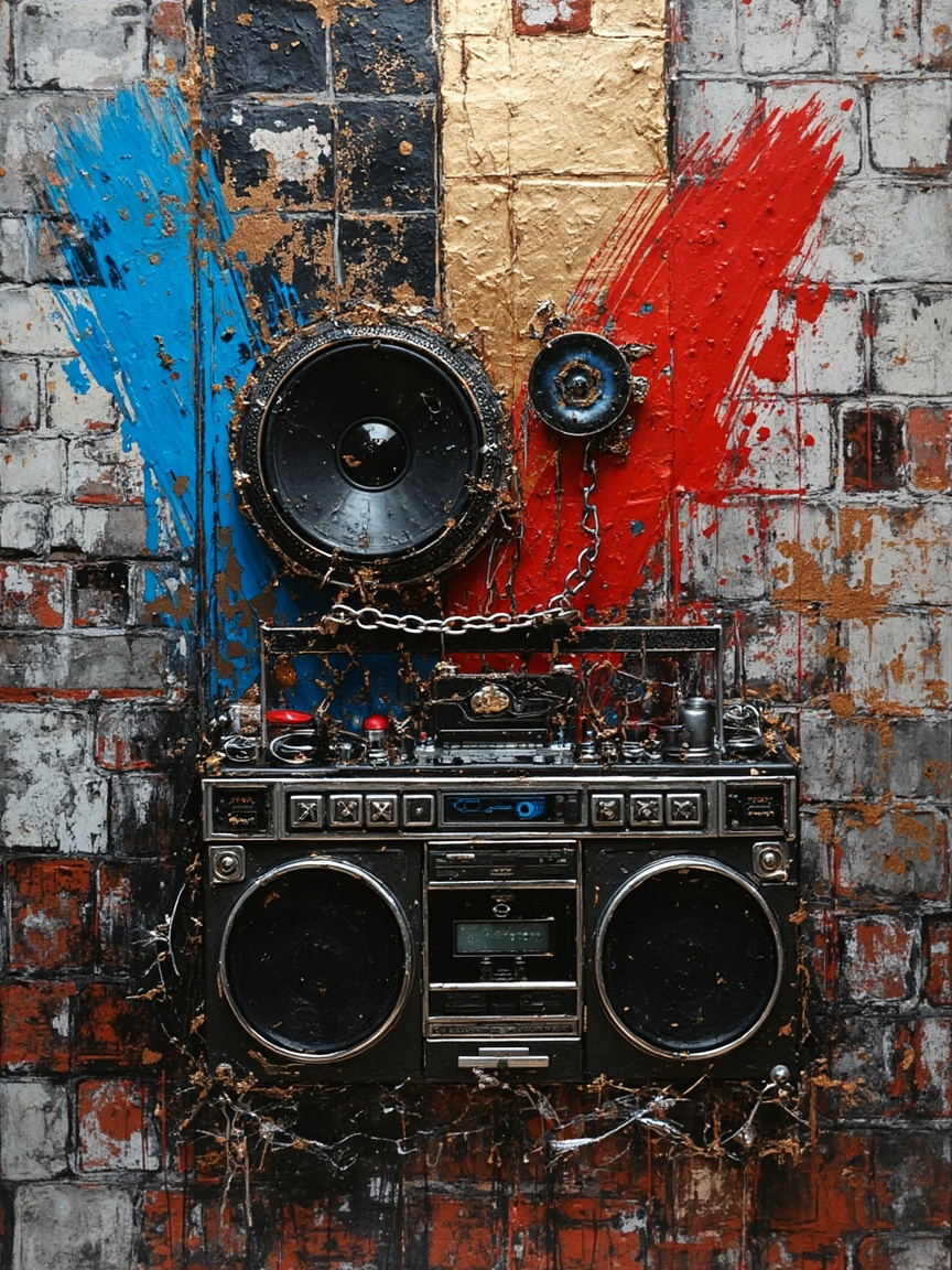 The palette is as bold as the music itself. Black is a staple, grounding the design in power and sophistication. Pops of metallic gold, silver, and platinum recall hip-hop’s love affair with jewelry. Deep reds, royal blues, and rich purples add drama, while neutral grays and concrete tones nod to the urban cityscape.