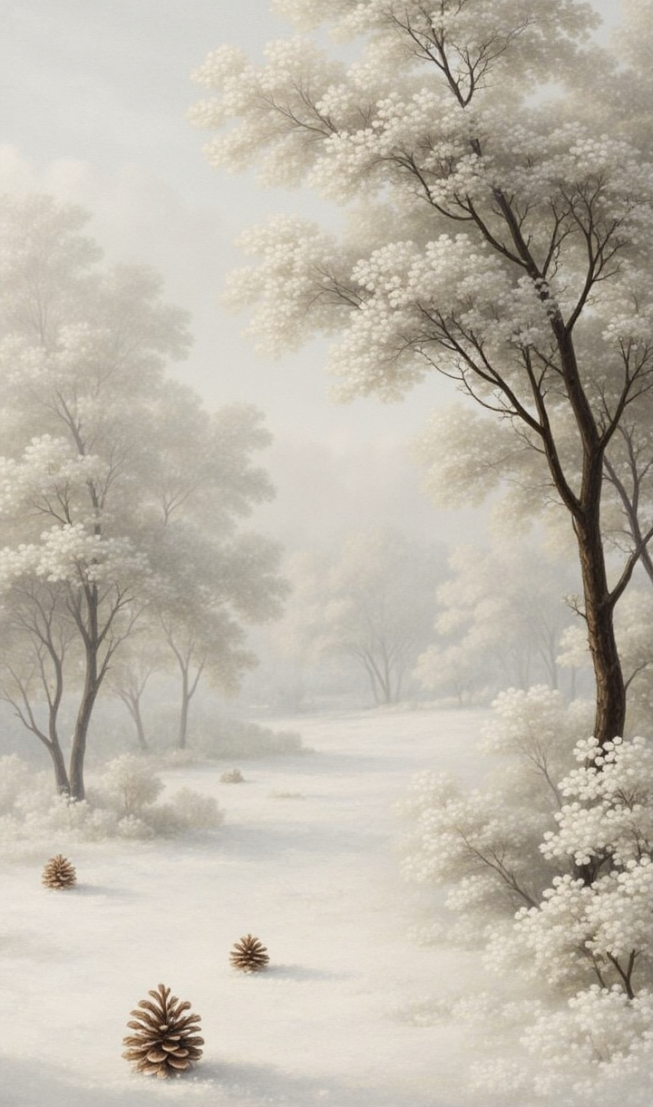 This palette creates an airy, peaceful backdrop that reflects winter’s beauty without feeling cold or stark.